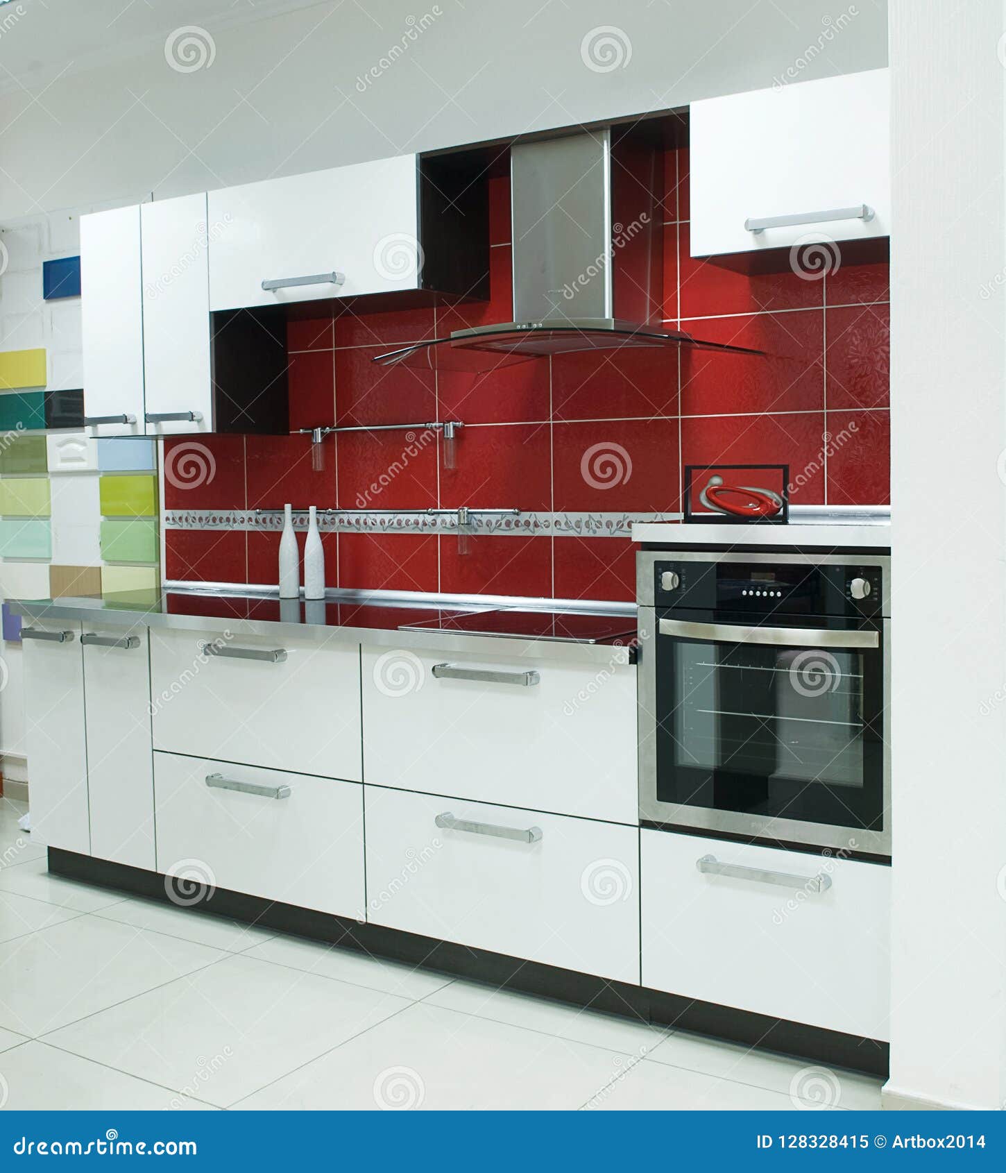 Modern Red And White Kitchen Interior Stock Photo Image Of