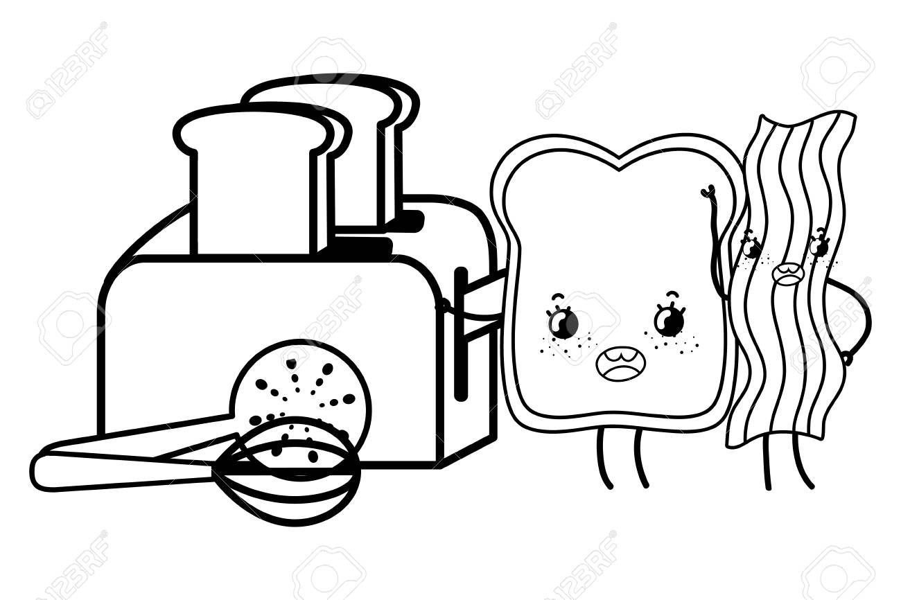 Kitchen And Food Kawaii Cartoons In Black And White Stock Vector