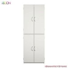 Tall Storage Pantry Kitchen Cabinet White 4 Door Wood Organizer 5