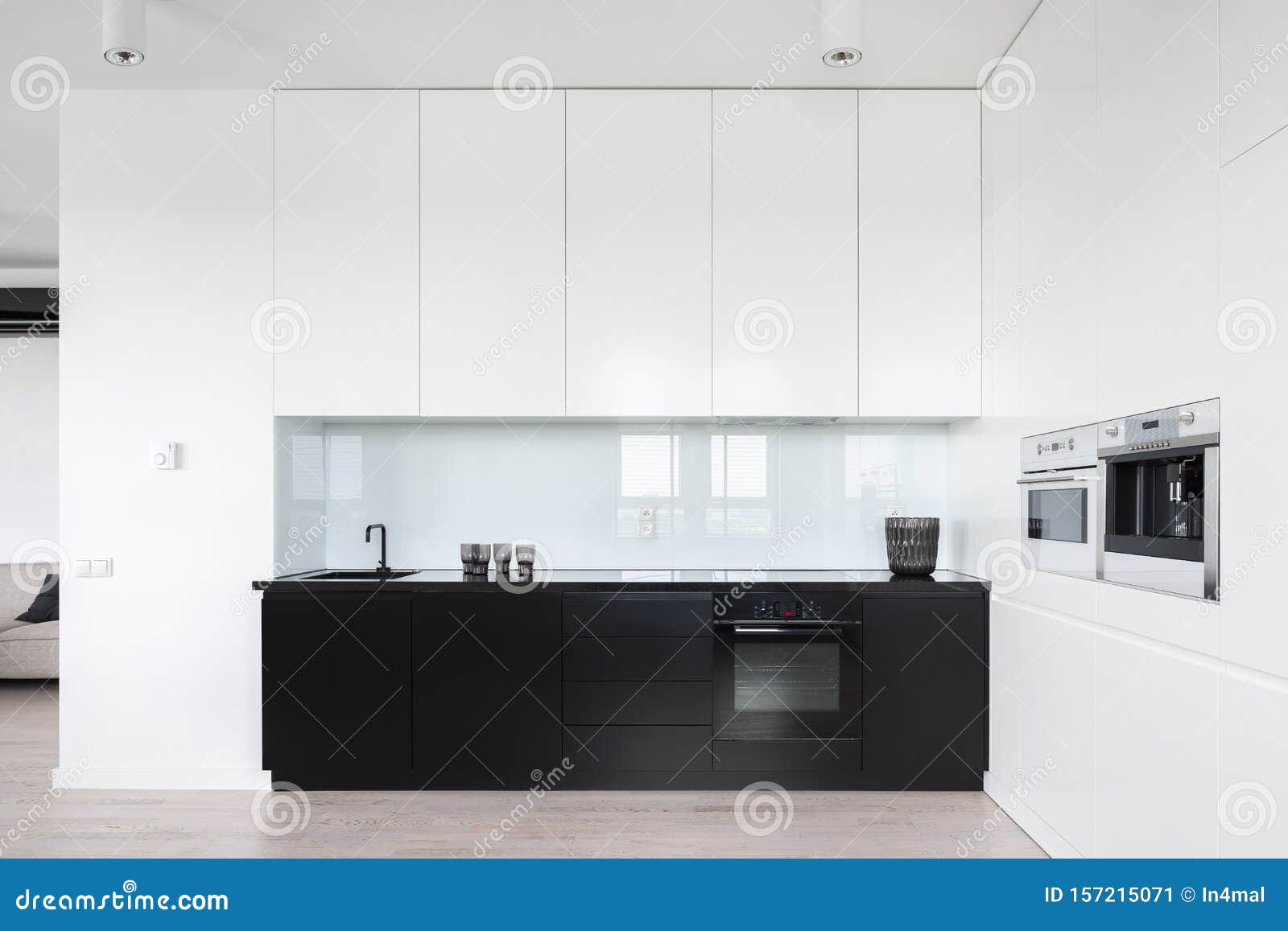 Beautiful Black White Kitchen Simple Cupboards Interiors Stock Image