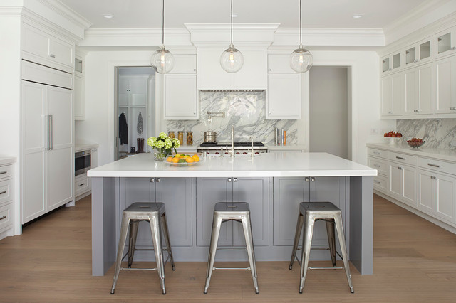 Transitional White Kitchen And Ash Gray Island Tedd Wood Llc
