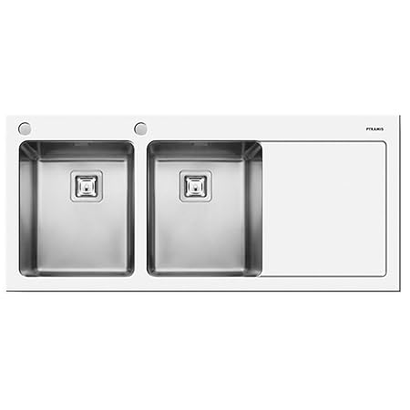 Double Bowl Stainless Steeltempered White Glass Panel Kitchen Sink