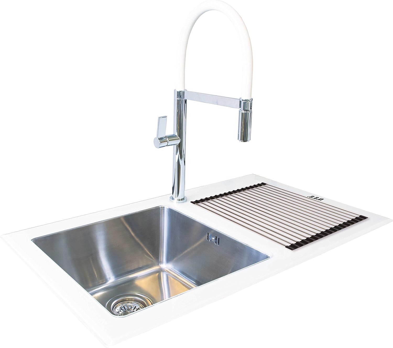 Reflection Glass Kitchen Sink Single Drainer White 860mm X 500mm