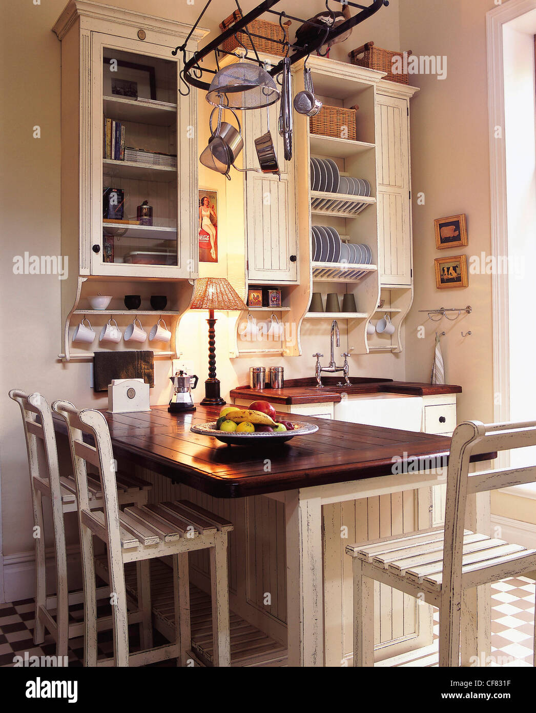 Kitchen White Painted Walls Brown And White Check Tiled Floor