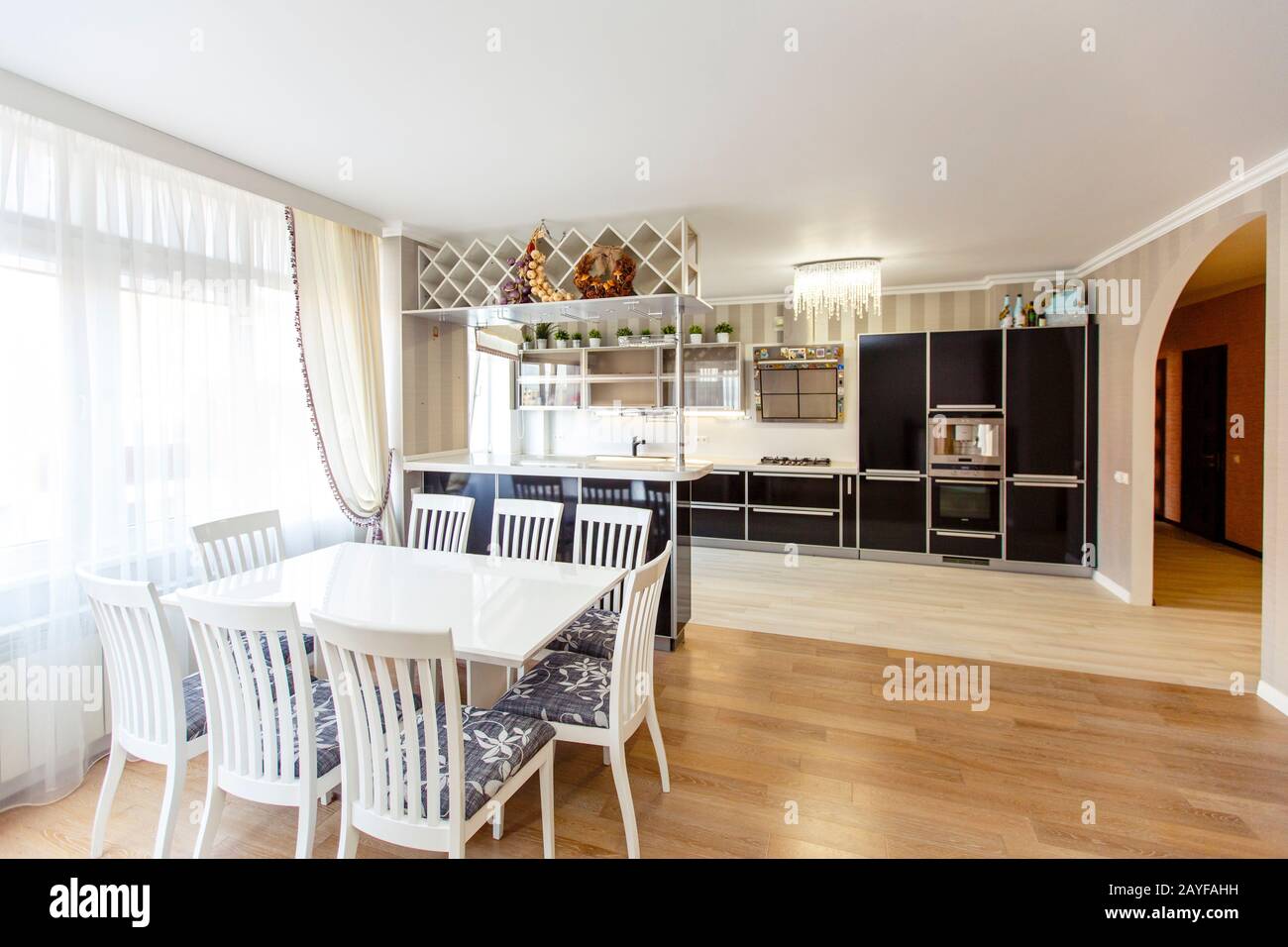 Classic Style Kitchen And Dining Room Interior In Black And White