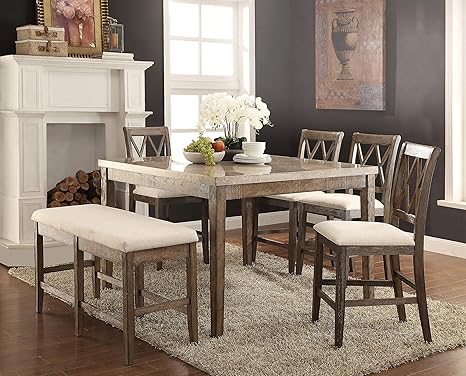 Acme Claudia Counter Height Table White Marble Salvage Brown