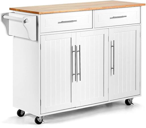 Hommoo Kitchen Storage Cart Portable Folding Rolling Wood Kitchen