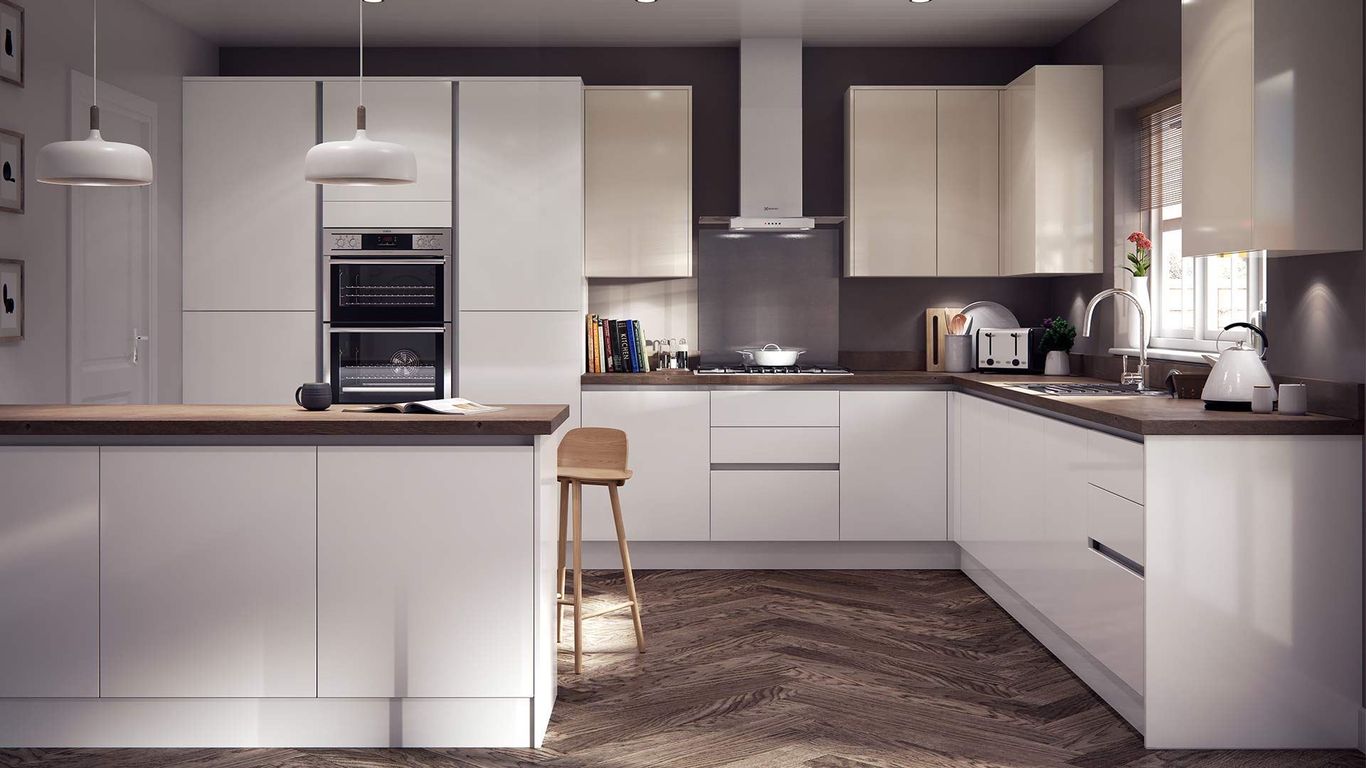 Ck Kitchens Burbidge Malmo White High Gloss Slab Handless Kitchen