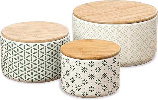 White Embossed Canisters With Wood Lids Set Of 3 Kirklands