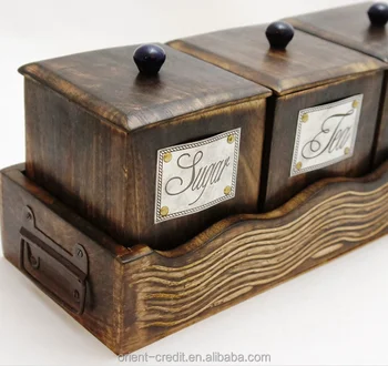 Handmade Small Tea Coffee Sugar 3 Piece Canister Set Wooden