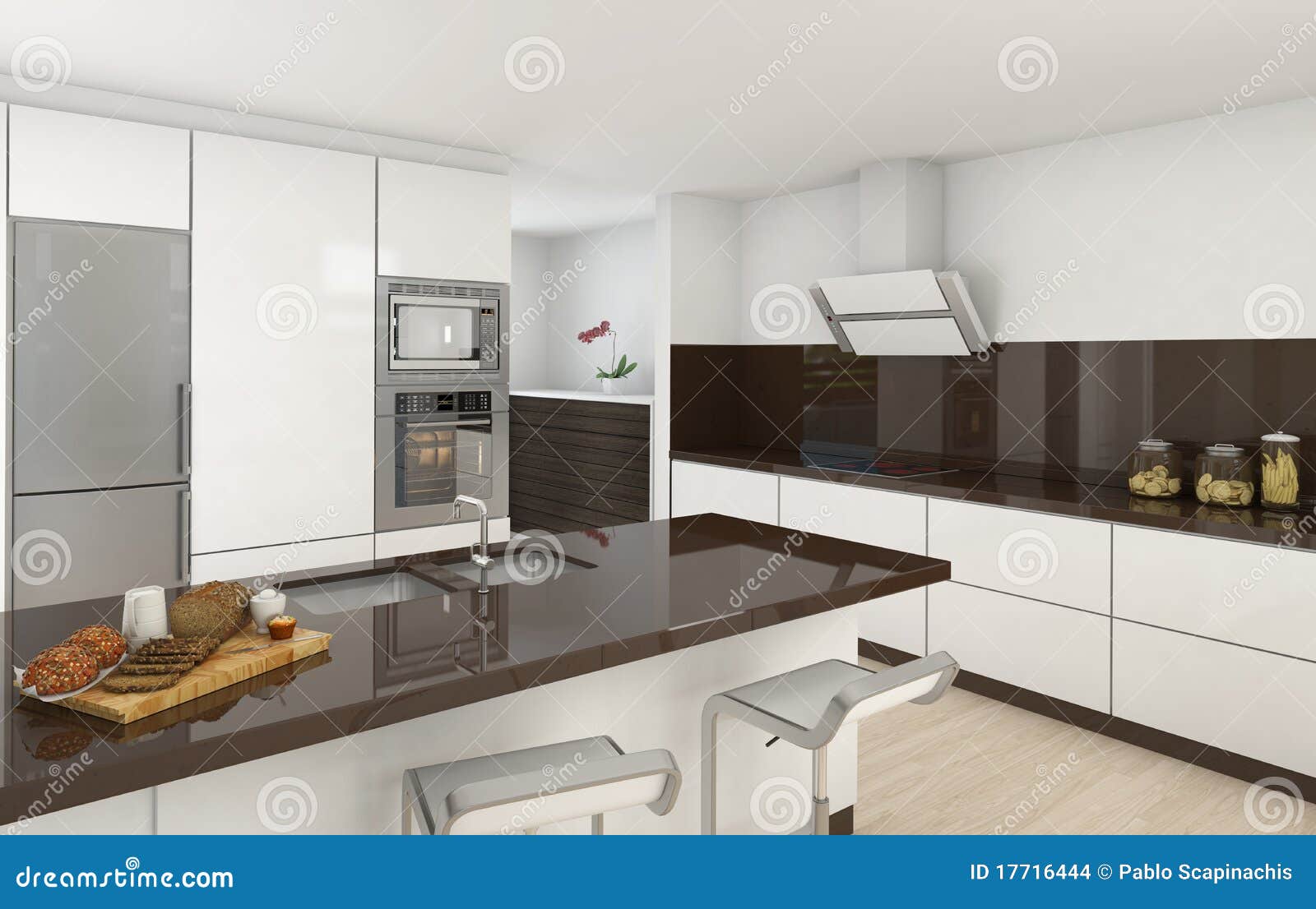 White And Brown Modern Kitchen High Quality Architecture Stock