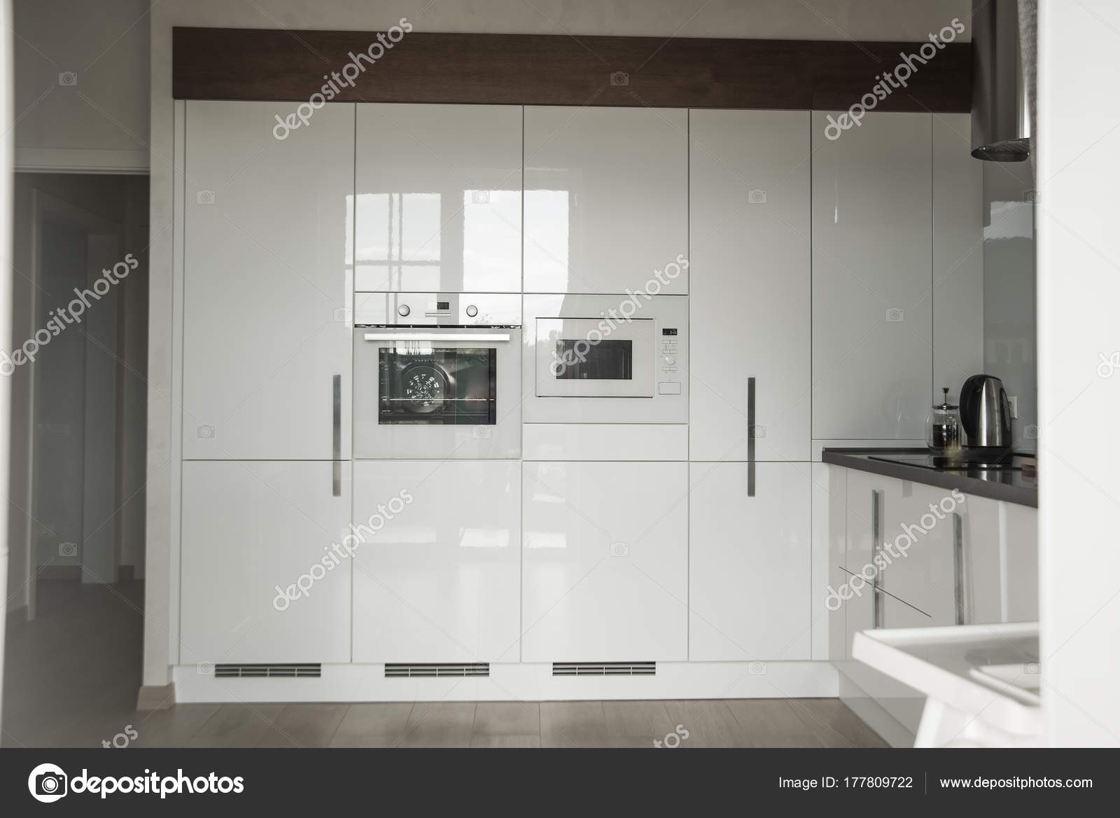 Modern Kitchen Stainlesssteel Appliances White Cabinets Stock