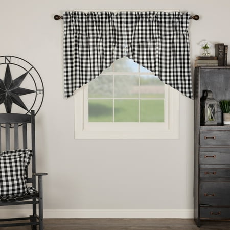 Black White Gingham Checkered Plaid Kitchen Tier Curtain Valance
