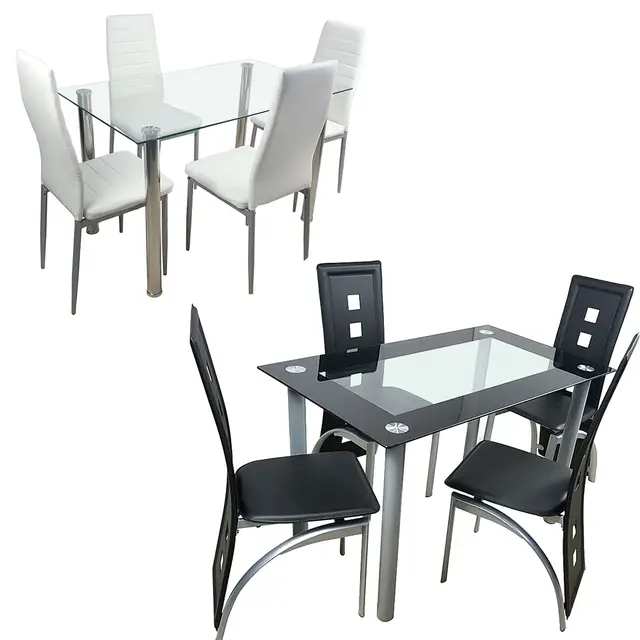 Us Shipping Dining Table Set Glass Steel W 4 Chairs Kitchen Room