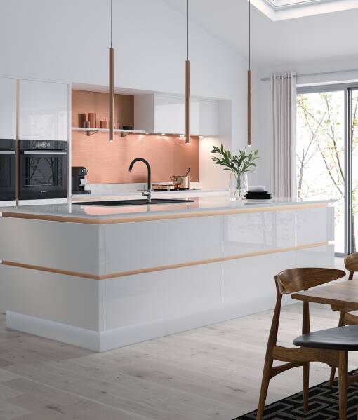 Handleless Wood Effect White Gloss Kitchen Installation In