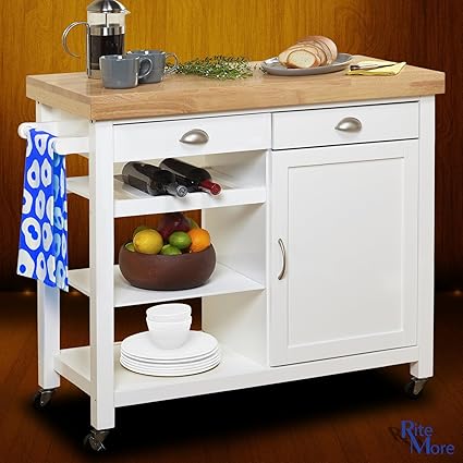 Homegear Kitchen Cart Butchers Block With Shelf And Cabinet On