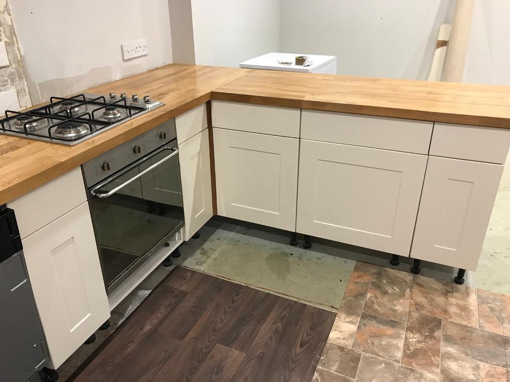 Ex Display Shaker Style Off White Kitchen Solid Wood Worktops