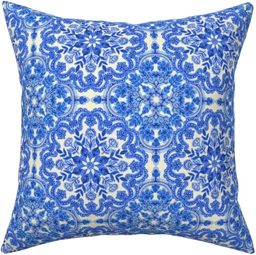 Amazon Com Roostery Throw Pillow Folk Art Cobalt Blue And White