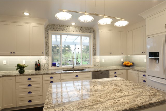 White Kitchen With Cobalt Blue Accents Oregon City Or Craftsman