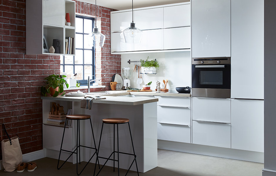 Alisma High Gloss White Slab Fitted Kitchens Diy At B Q