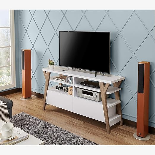 Amazon Com White Light Oak Two Tone 60 Inch Modern Tv Stand Tan