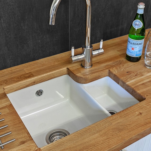 Abode Kitchen Sink Provincial Large 2 Bowl Sink White Ceramic
