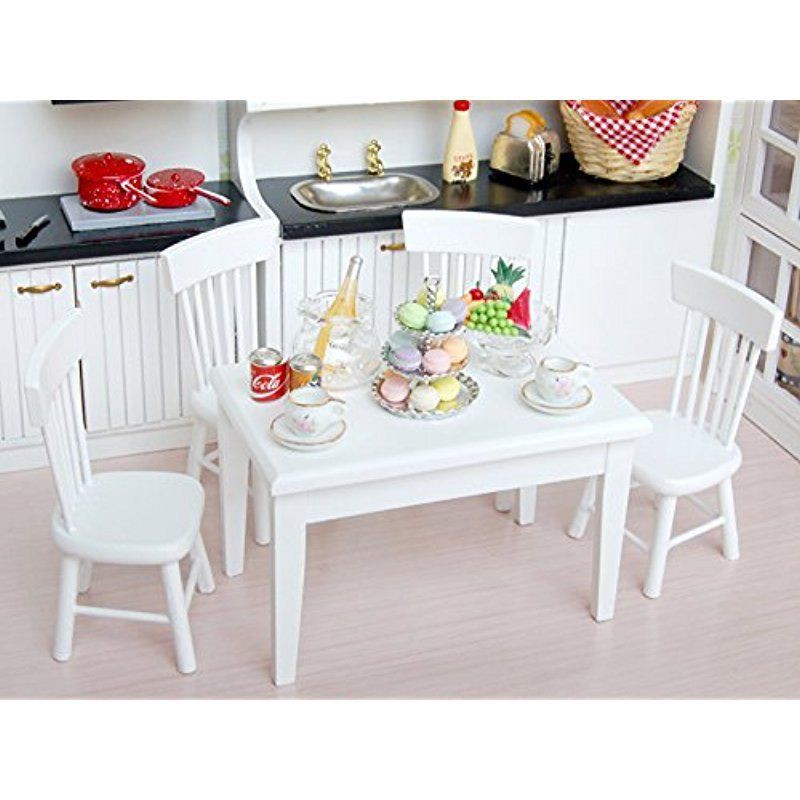 1 12 Dollhouse Miniature Dining Table And Chairs Set White Kitchen