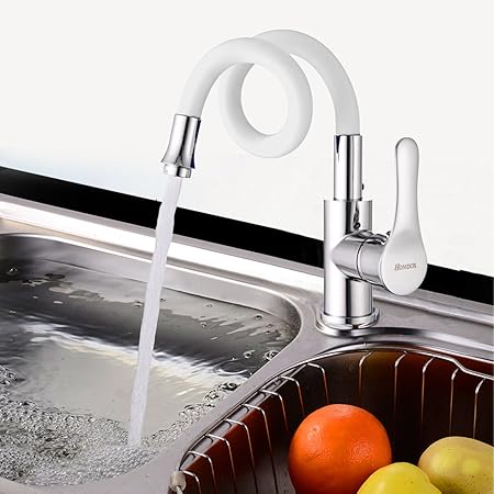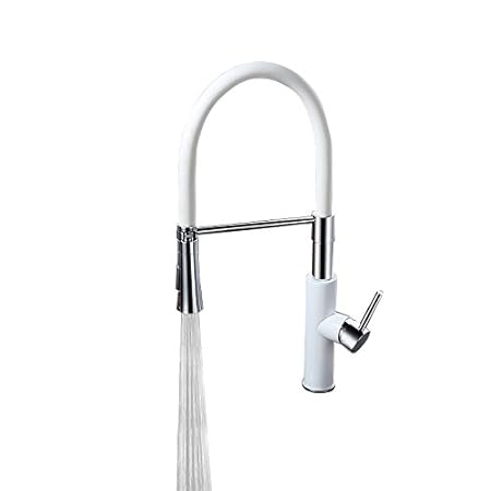 Lovedima Modern Sleek Black White Pull Down Spray Kitchen Faucet