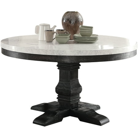 Acme Nolan Pedestal Round Dining Table White Marble Weathered