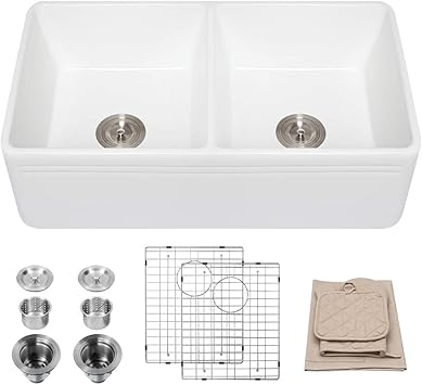 Lordear 33 Inch Fireclay Farmhouse Kitchen Sink Apron Front White