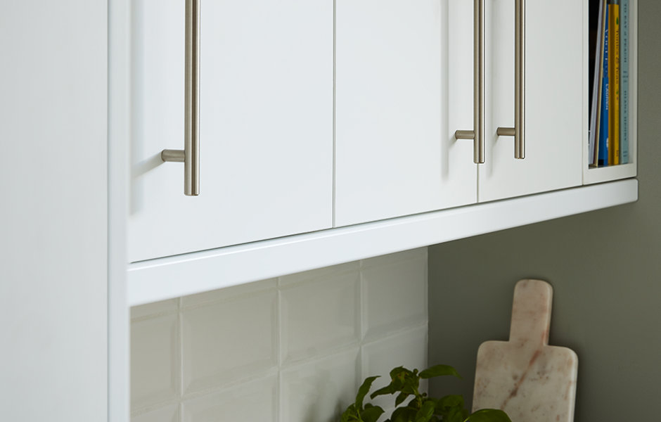 A Matt White Slab Cabinet Door With An Integrated Linear Pull