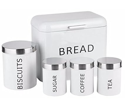 5 Piece Set Grey White Metal Kitchen Storage Canisters Tea