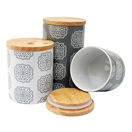 Ceramic Storage Canisters Grey White Set Of 3 Amazon Co Uk