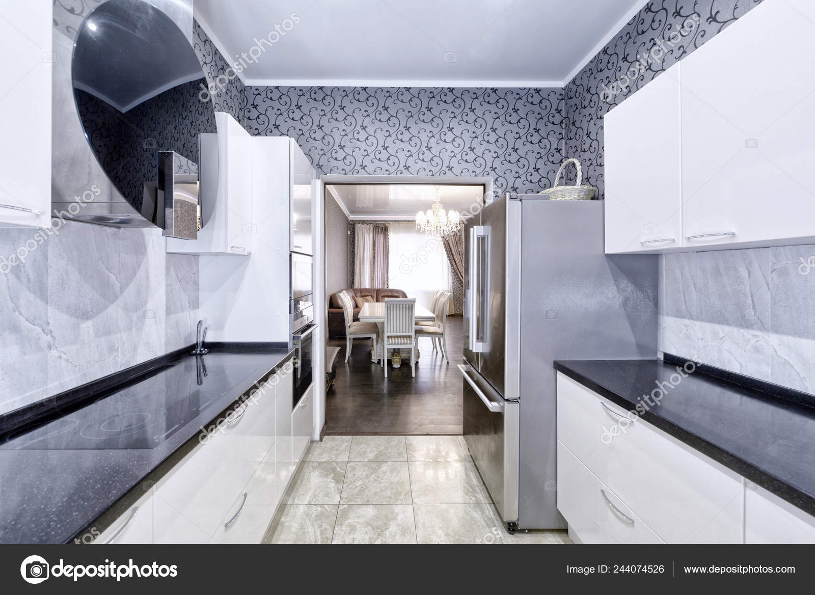 Modern Design Interior White Glossy Kitchen Luxurious Apartment