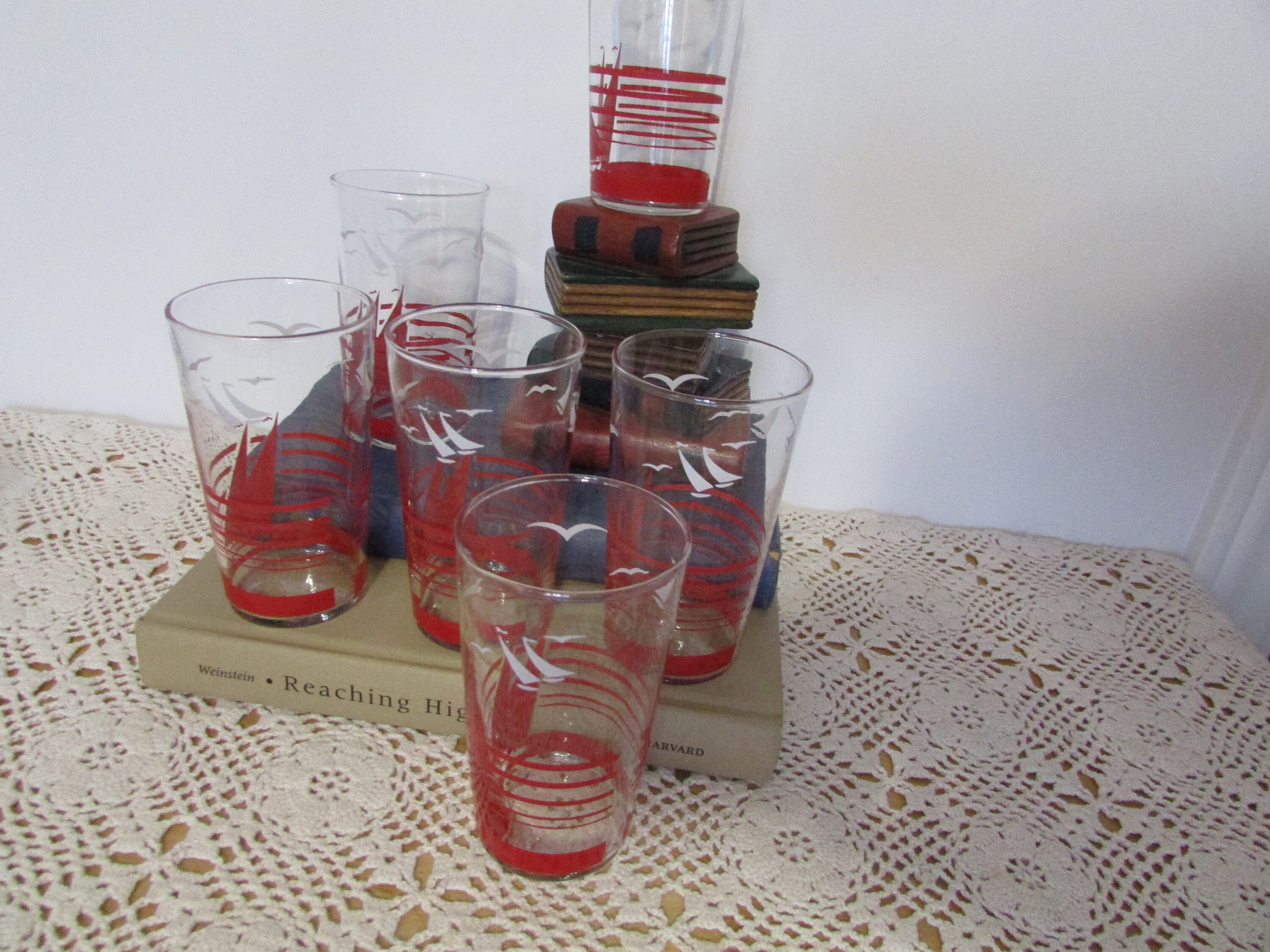Sailboats Glasses Red And White Vintage Kitchen 6 Tumblers Etsy
