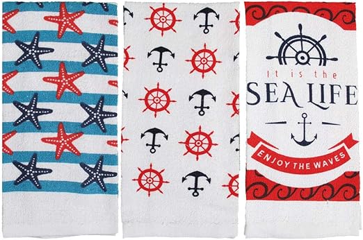 Amazon Com Nautical Kitchen Towels Set Red White Blue Kitchen