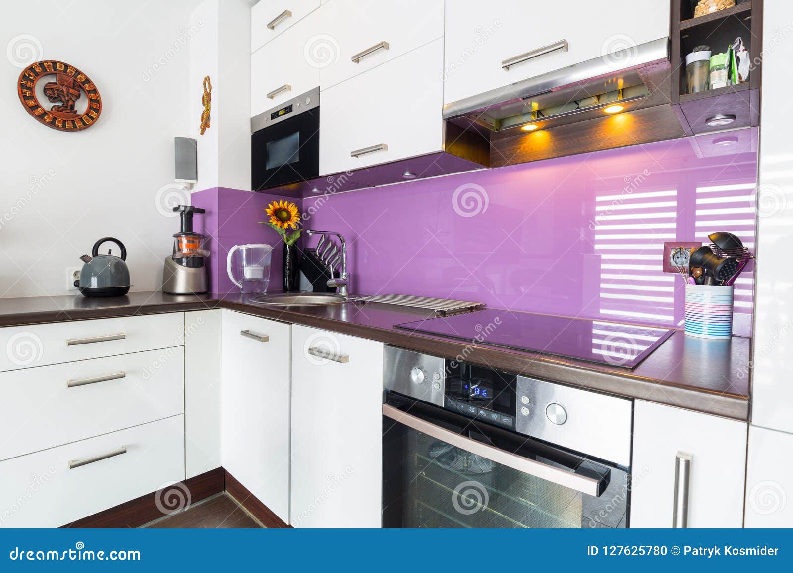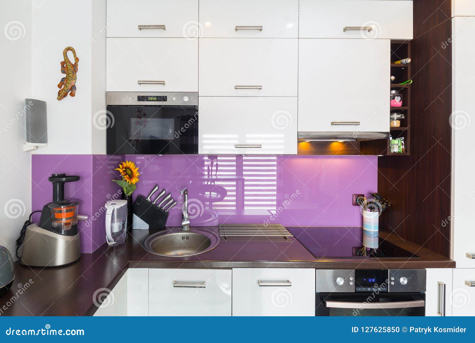 Modern White Purple Kitchen Interior Stock Photo Edit Now 115126543
