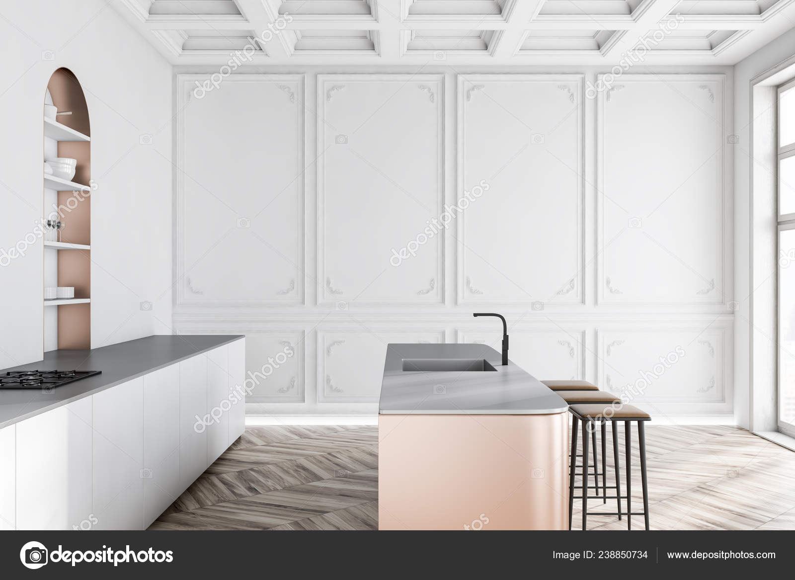 Corner Stylish Kitchen White Brick Walls Stock Illustration 1556144657