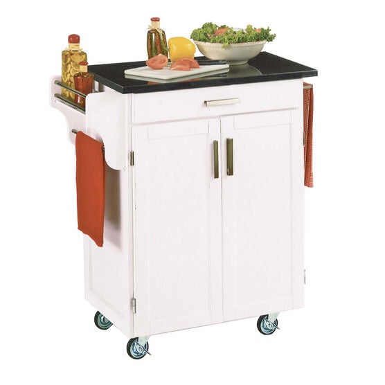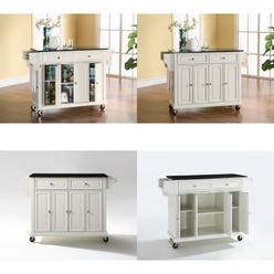 Crosley Full Size White Kitchen Cart With Black Granite Top