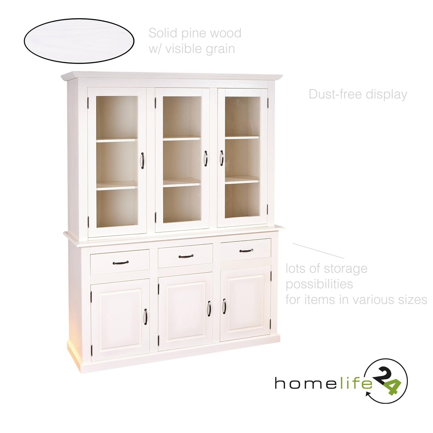 4ft Kitchen Dining Room Dresser Unit With Glazed Top Cupboards